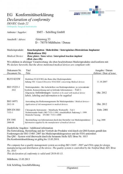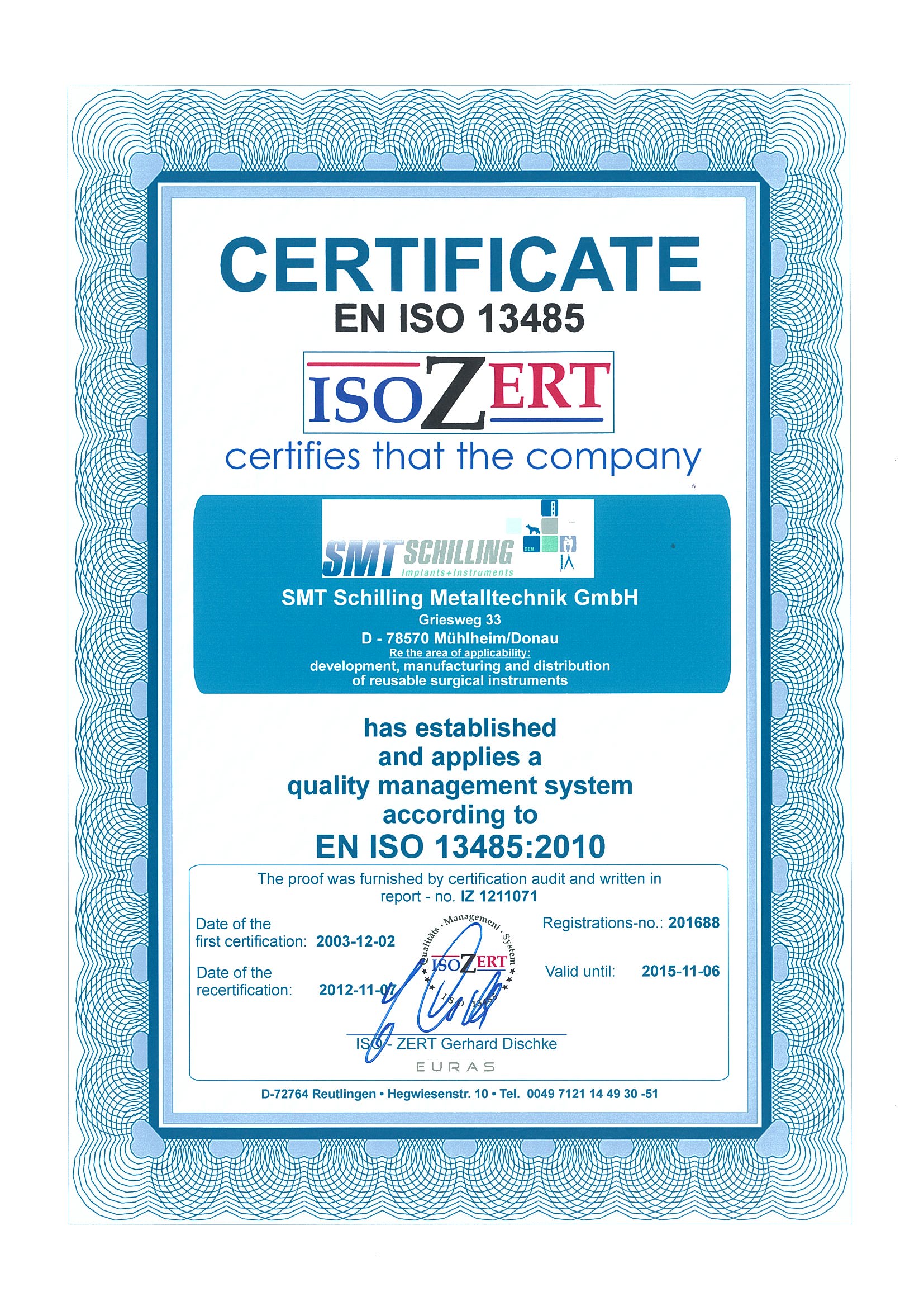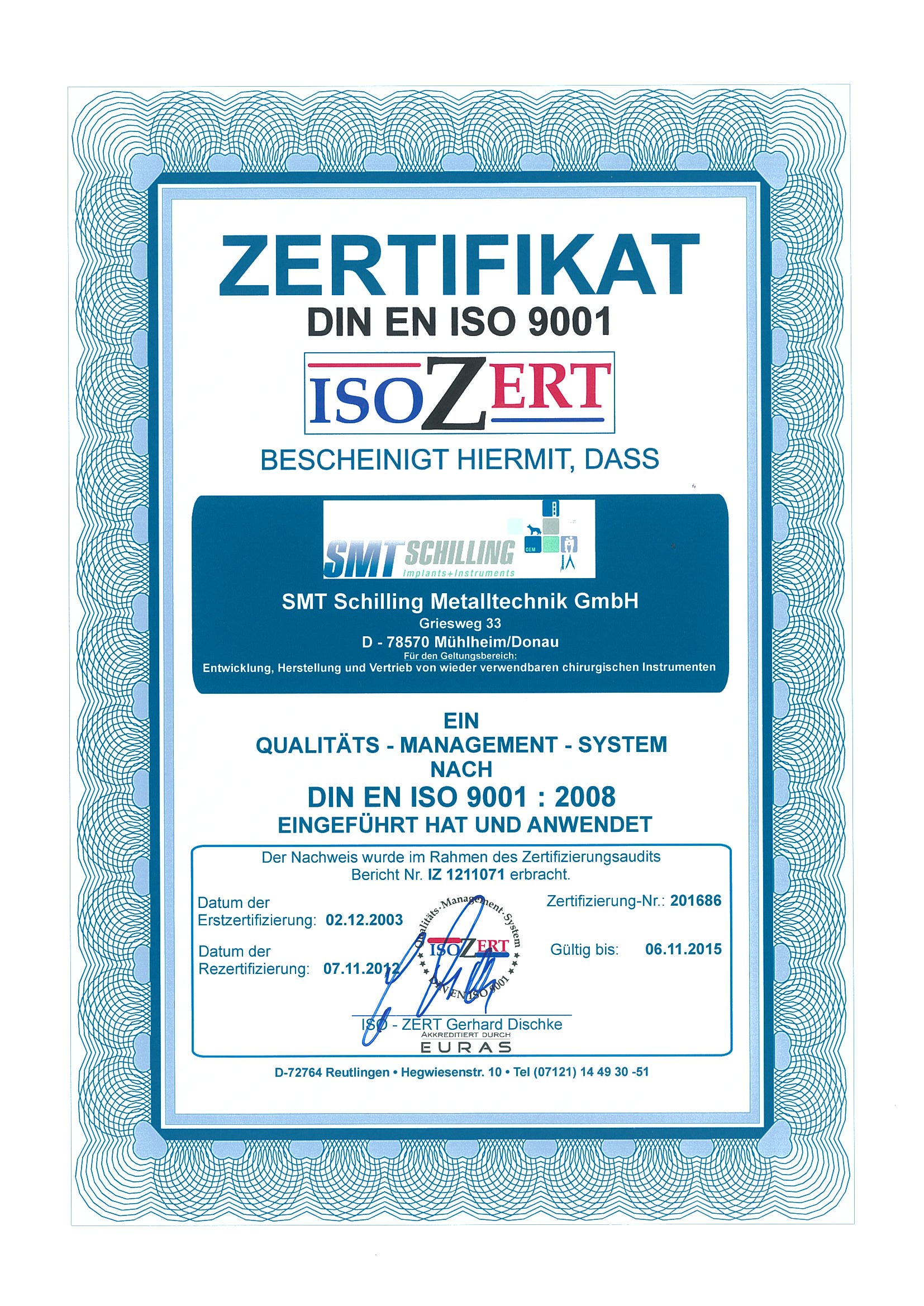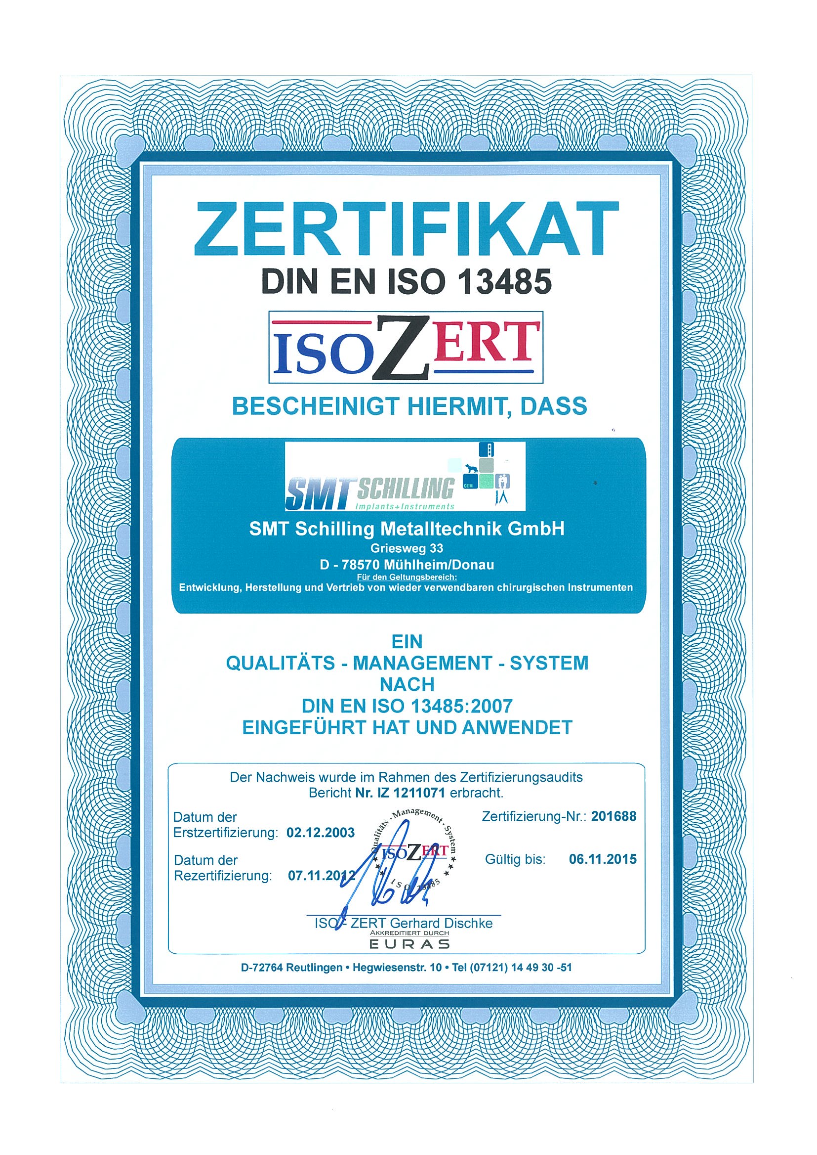 Wir sind zertifiziert nach DIN EN ISO 9001:2008, DIN EN ISO 13485:2007 und der EG-Richtlinie 93/42/EWG Anhang 2 Abschnitt3